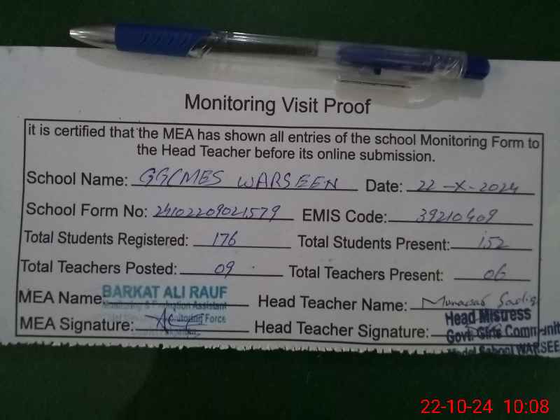 | EMIS Code: 39210409 | Name of School: GGCMES WARSEEN | |||