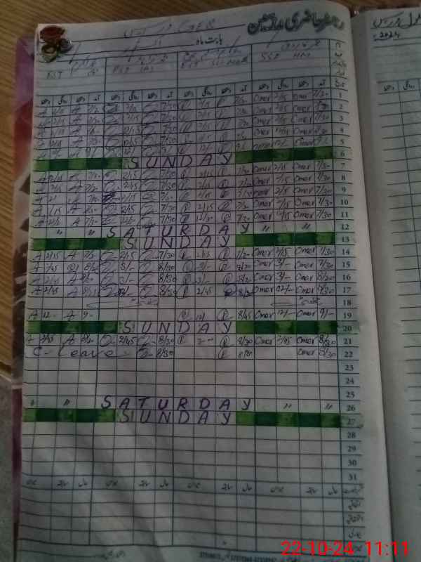 | CNIC | Full Name | Designation | R/C | Absence During Last Calender Month |