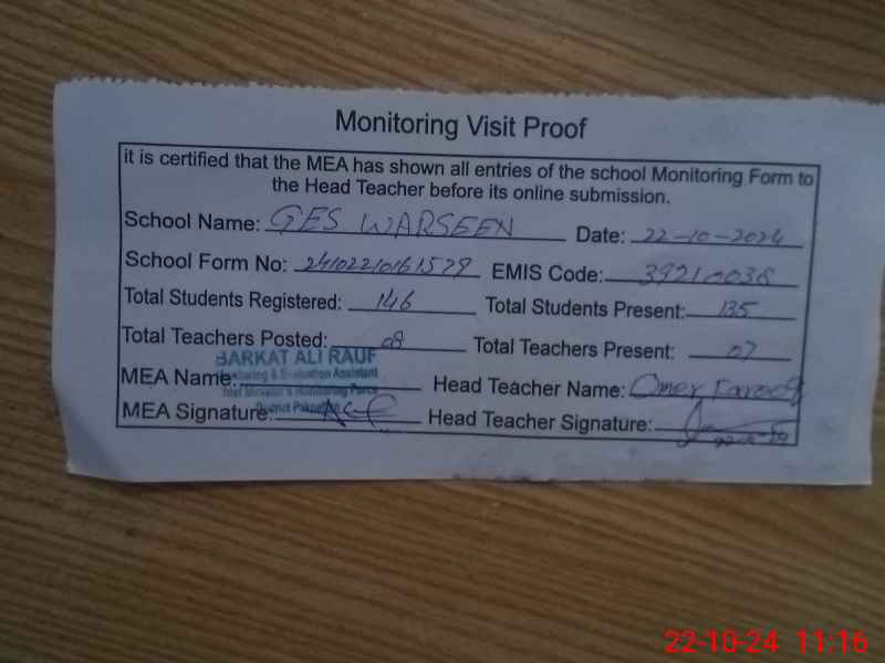 | EMIS Code: 39210038 | Name of School: GES WARSEEN | |||