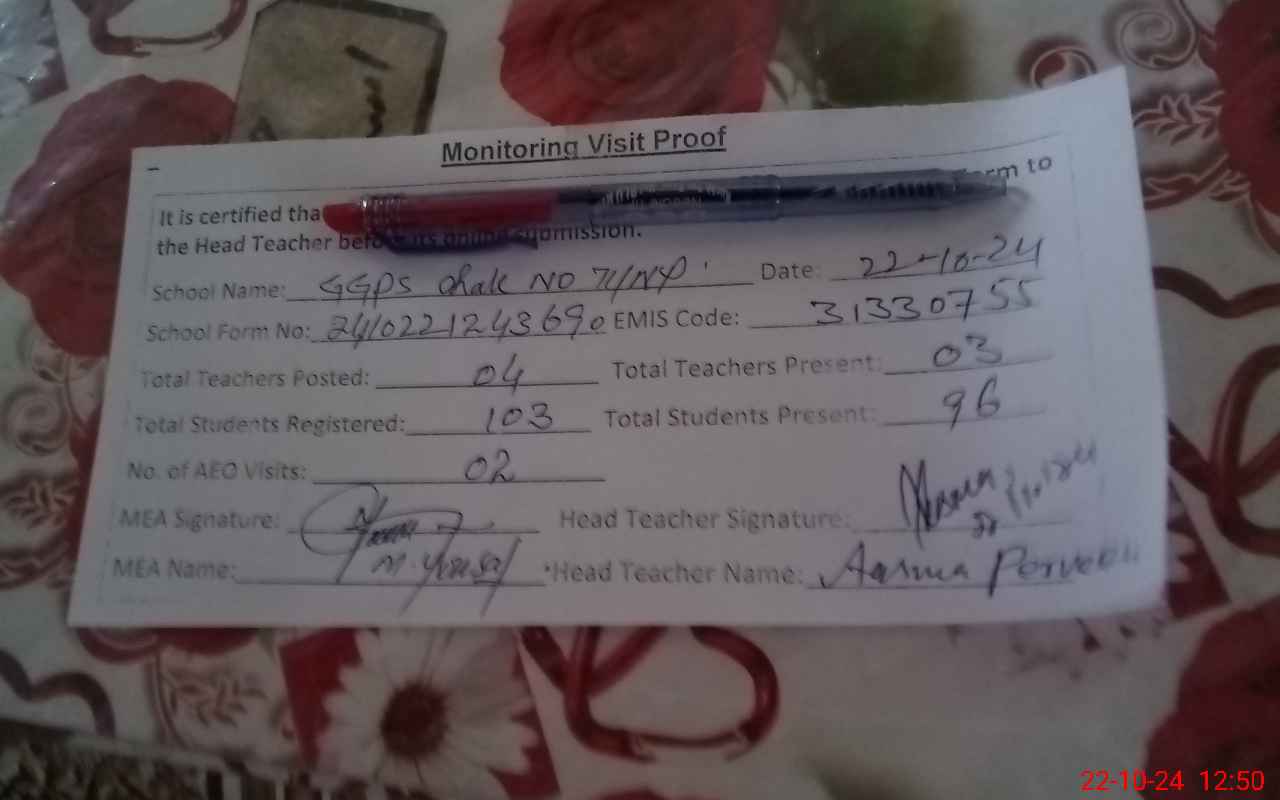 | EMIS Code: 31330755 | Name of School: GGPS CHAK NO. 71/NP | |||