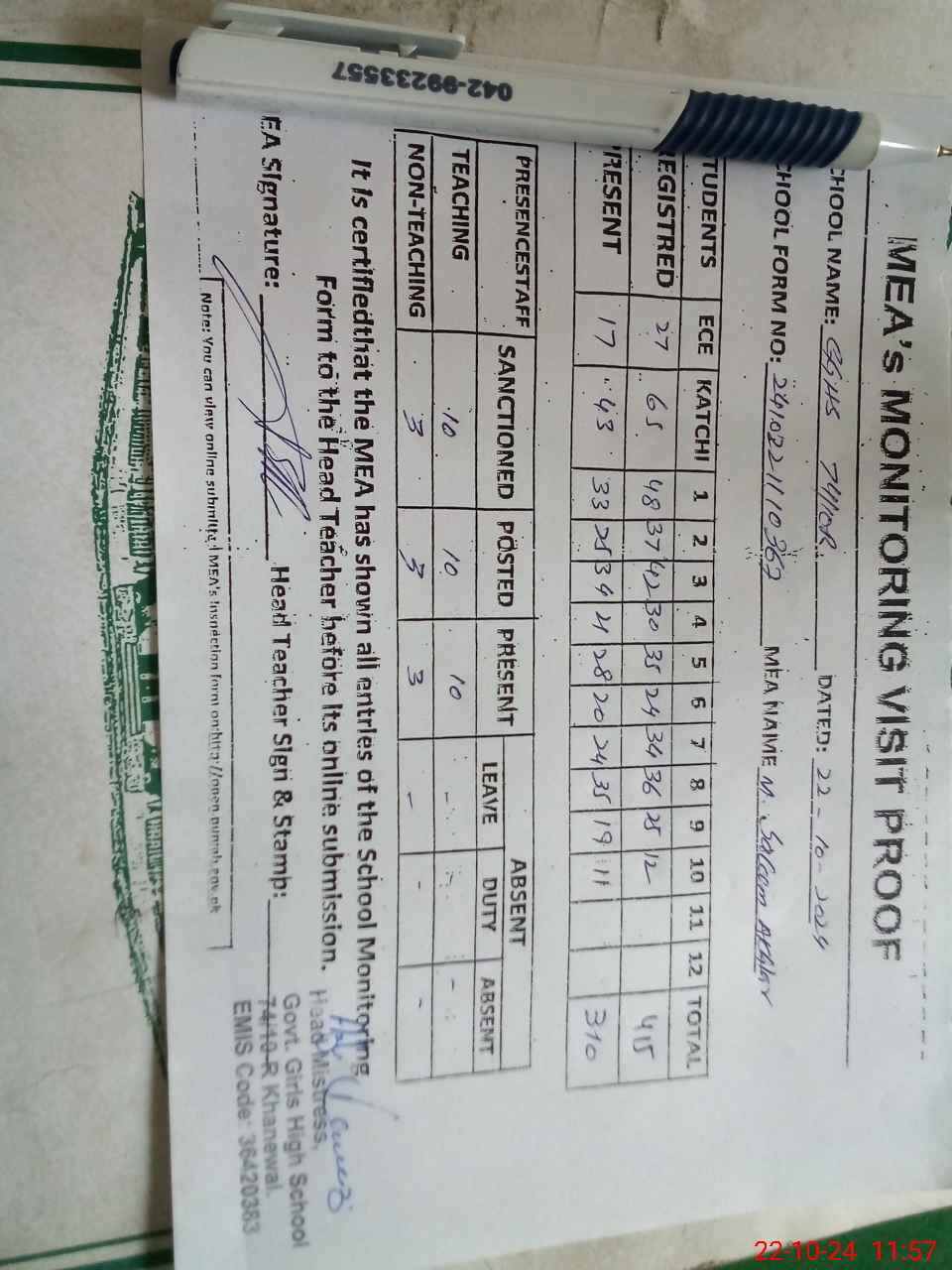 | EMIS Code: 36420383 | Name of School: GGHS 74/10-R, KHANEWAL | |||