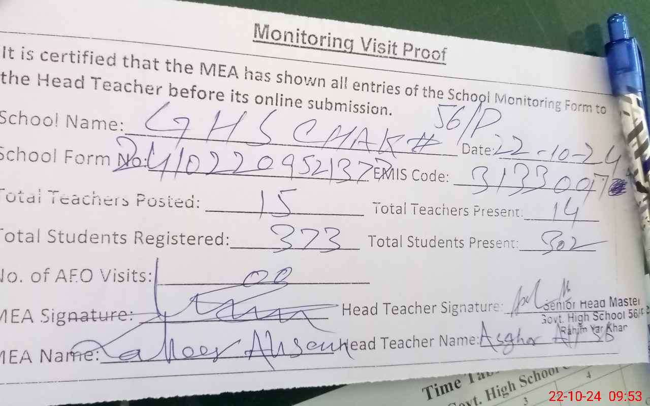 | EMIS Code: 31330017 | Name of School: GHS CHAK NO. 56/P | |||