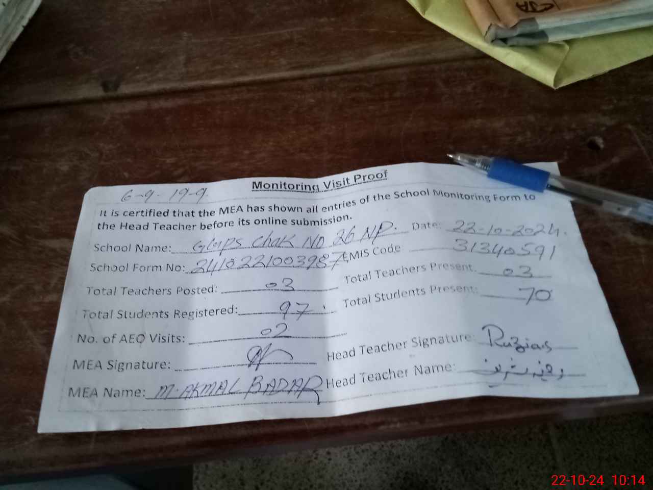 | EMIS Code: 31340591 | Name of School: GGPS CHAK NO. 26/NP | |||