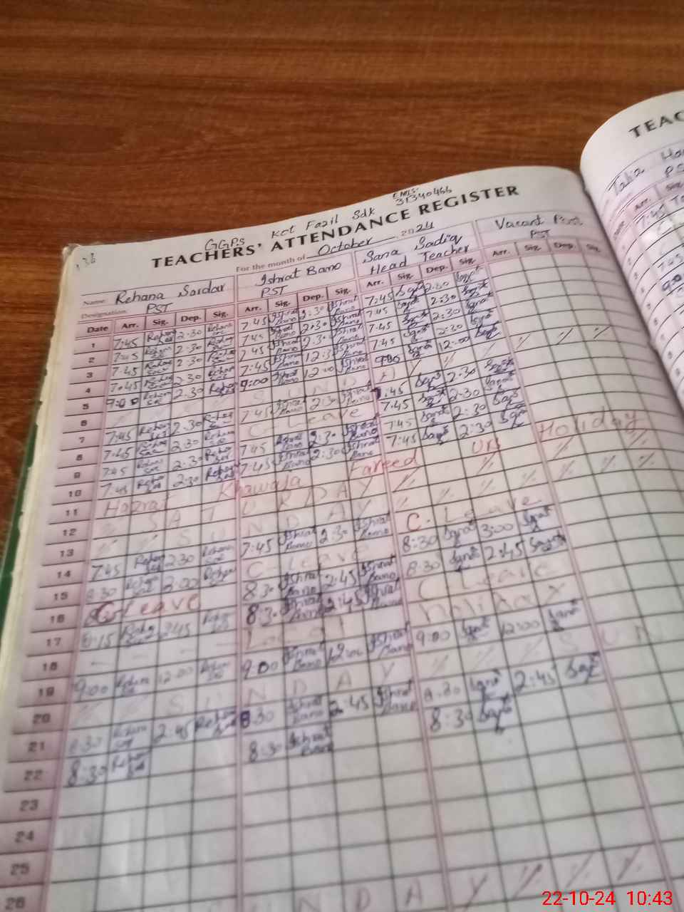 | CNIC | Full Name | Designation | R/C | Absence During Last Calender Month |