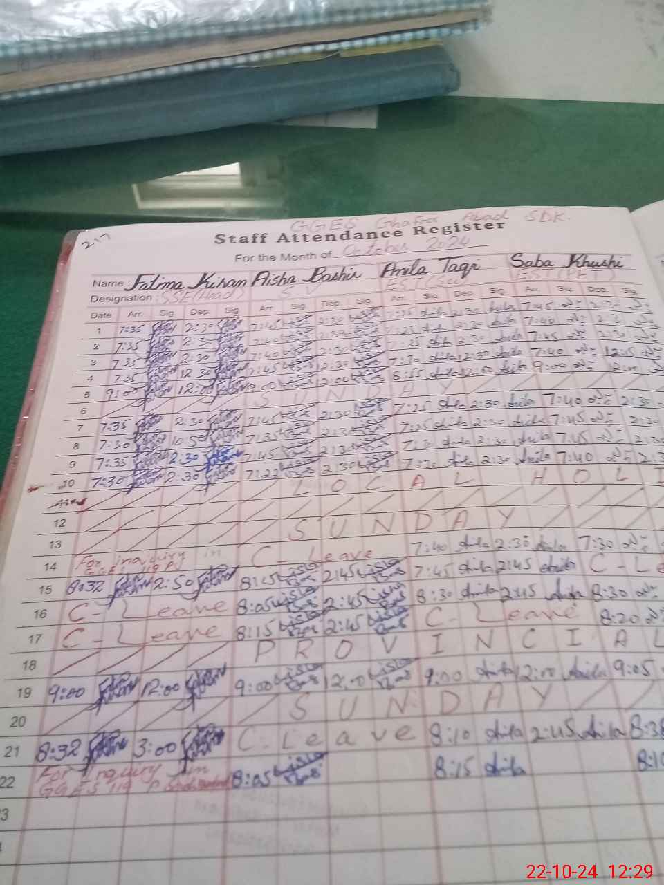 | 31**** | An**** BiBi | CV | Regular | 0 | 0 | 30 | 0 | 0 | 0 | 0 | 0 | 0 | Absent (Un-Authorized) |