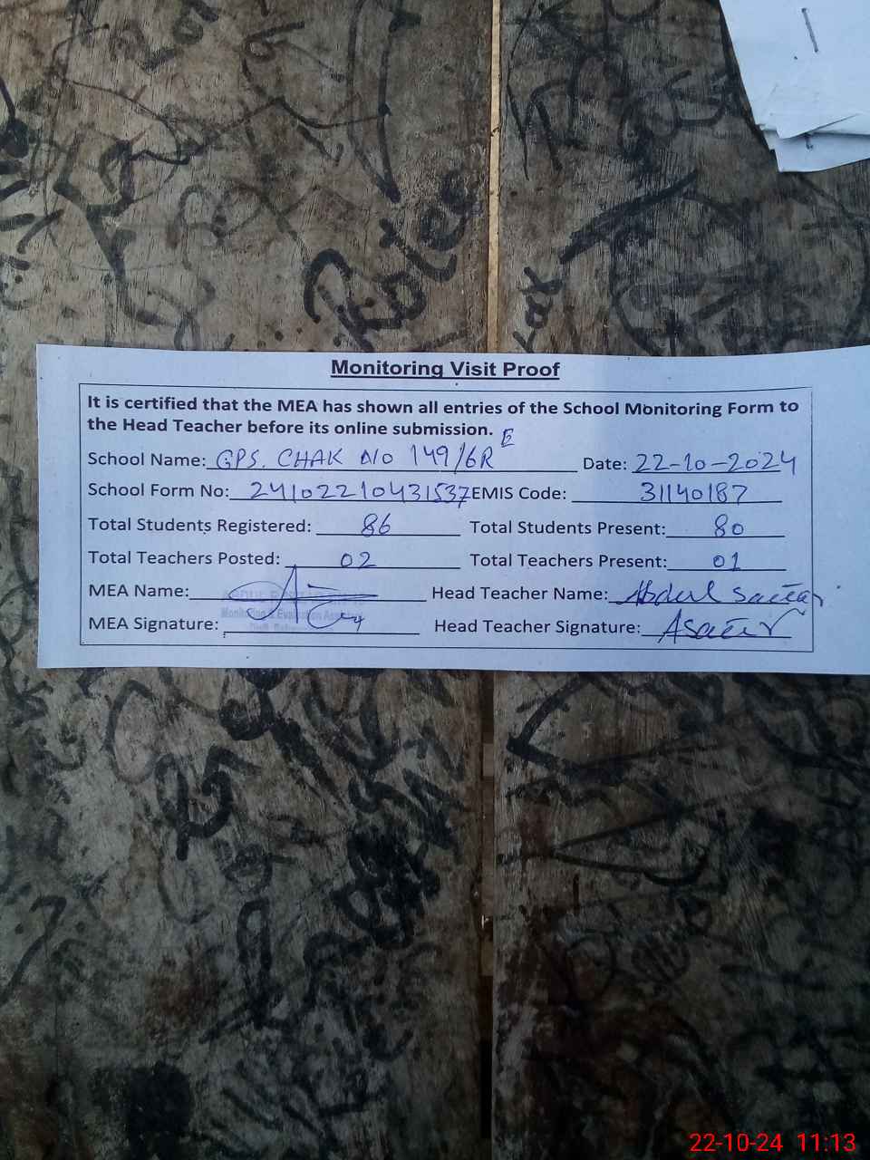 | EMIS Code: 31140187 | Name of School: GPS CHAK 149/6-R (E) | |||
