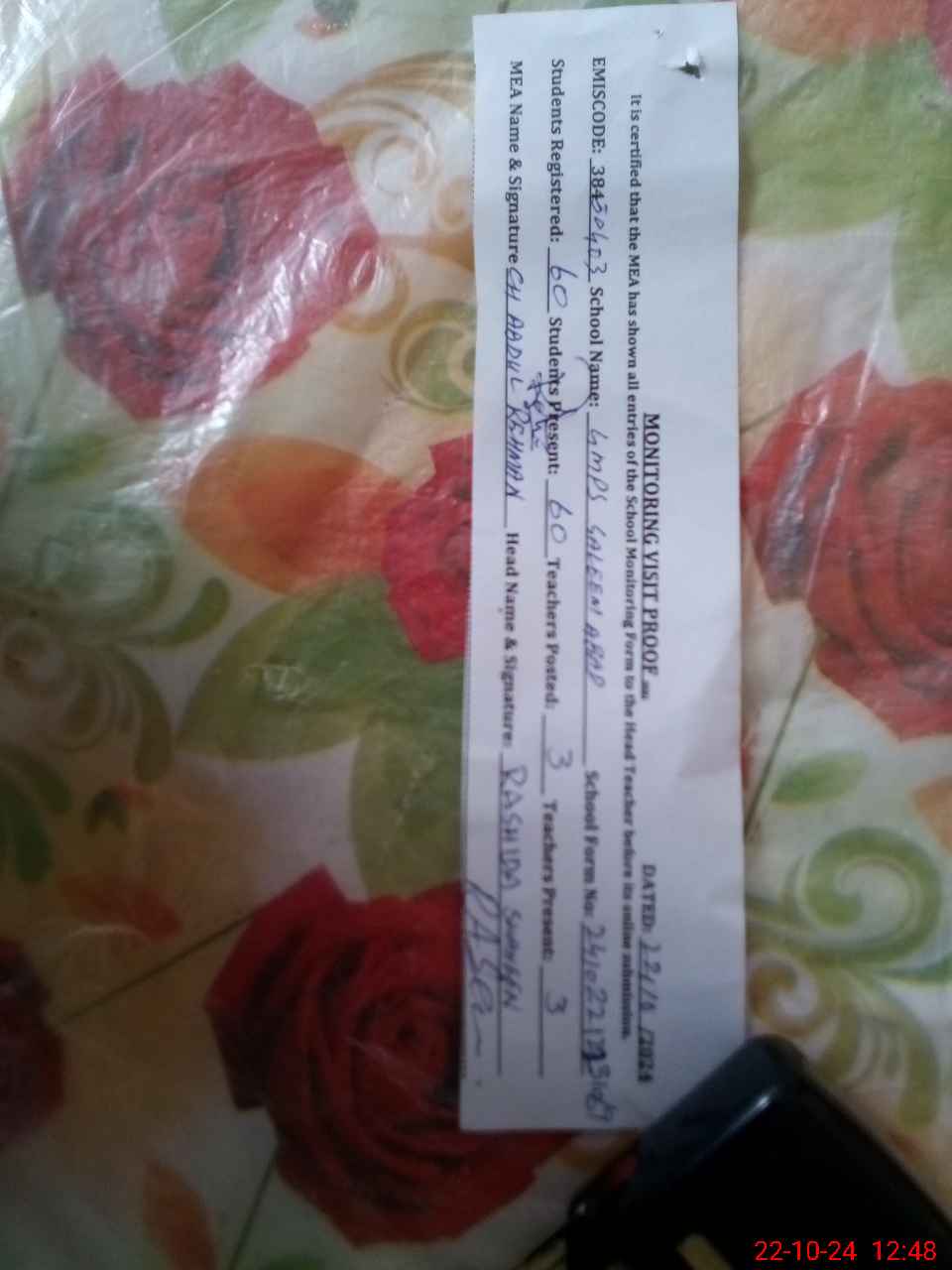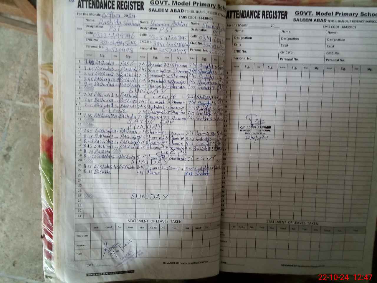 | Name: SH**** PA**** Designation: (School Headmaster's/Headmistress's) PST Phone/Cell Number: 03**** |
