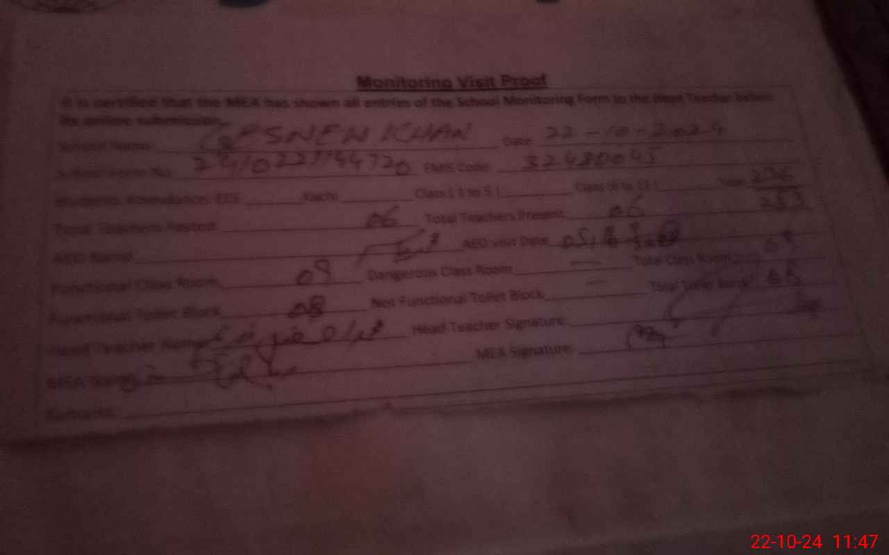 | EMIS Code: 32430045 | Name of School: GHS NEW KHAN | |||