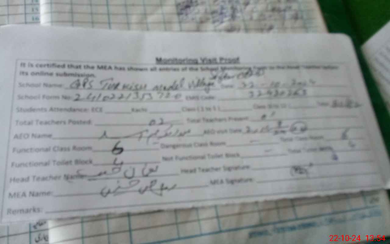 | EMIS Code: 32430263 | Name of School: GPS TURKISH MODEL VILLAGE SAFDAR ABAD | |||