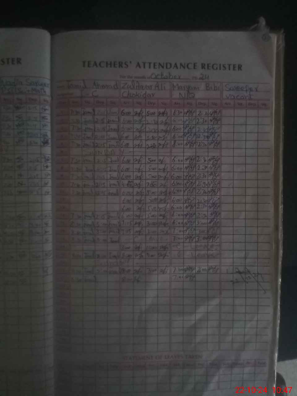 | Leave | Duty | Absent | Maternity | Medical | Ex- Pak |