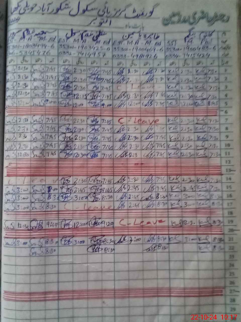 | CNIC | Full Name | Designation | R/C | Absence During Last Calender Month |