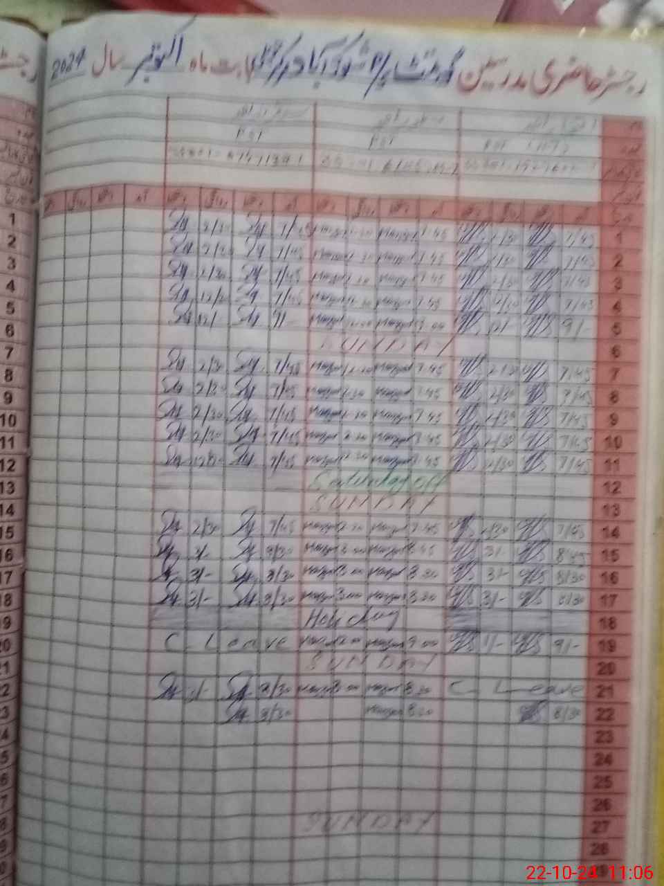 | Name: IF**** AH**** Designation: (School Headmaster's/Headmistress's) PST Phone/Cell Number: 03**** |