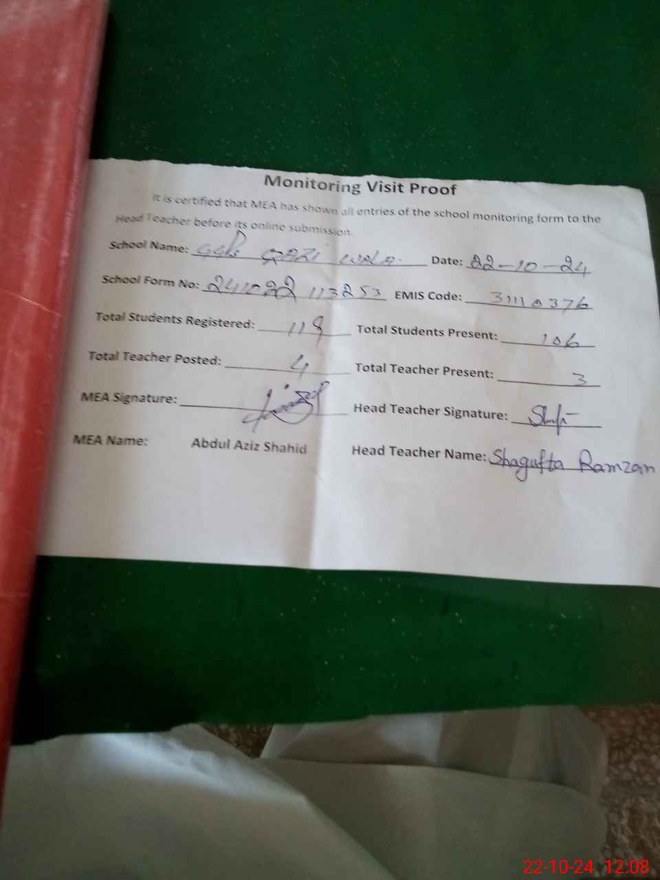 | EMIS Code: 31110376 | Name of School: GGPS QAZI WALA | |||