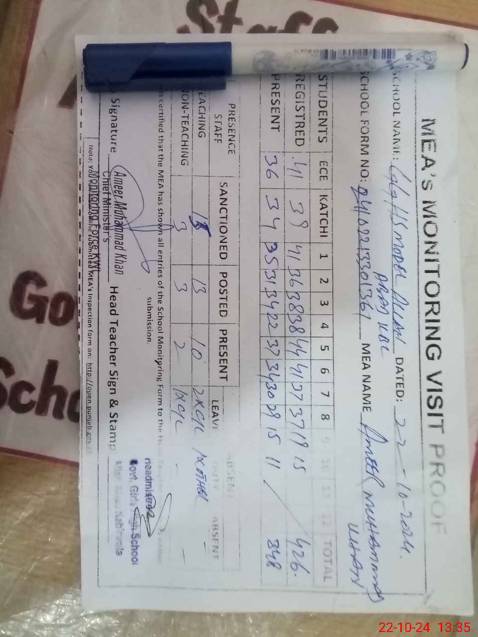 | EMIS Code: 36410102 | Name of School: GGHS MODEL ALLAH ABAD QADEEM, KABIRWALA | |||