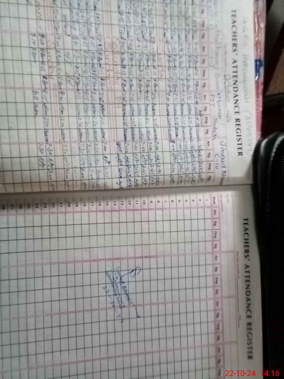 | CNIC | Full Name | Designation | R/C | Absence During Last Calender Month |