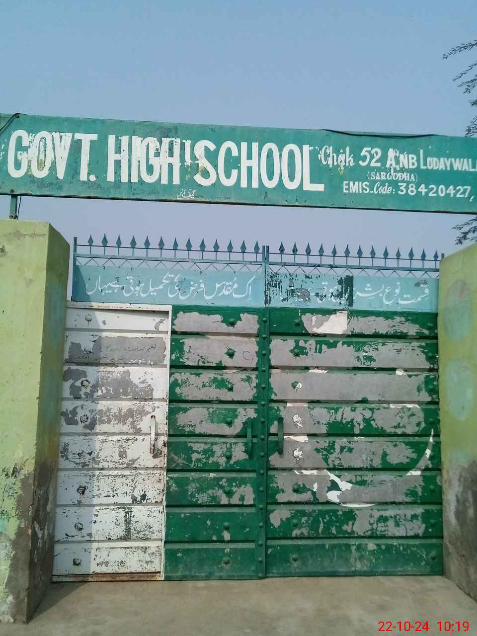 | EMIS Code: 38420427 | Name of School: GHS CHAK NO.52 ANB | |||