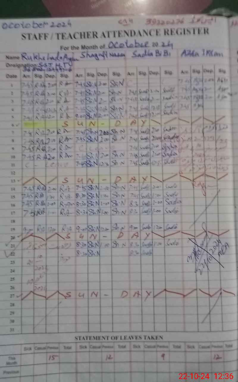 | Name: SA**** UZ**** FA**** Designation: (School Headmaster's/Headmistress's) EST Phone/Cell Number: 03**** |