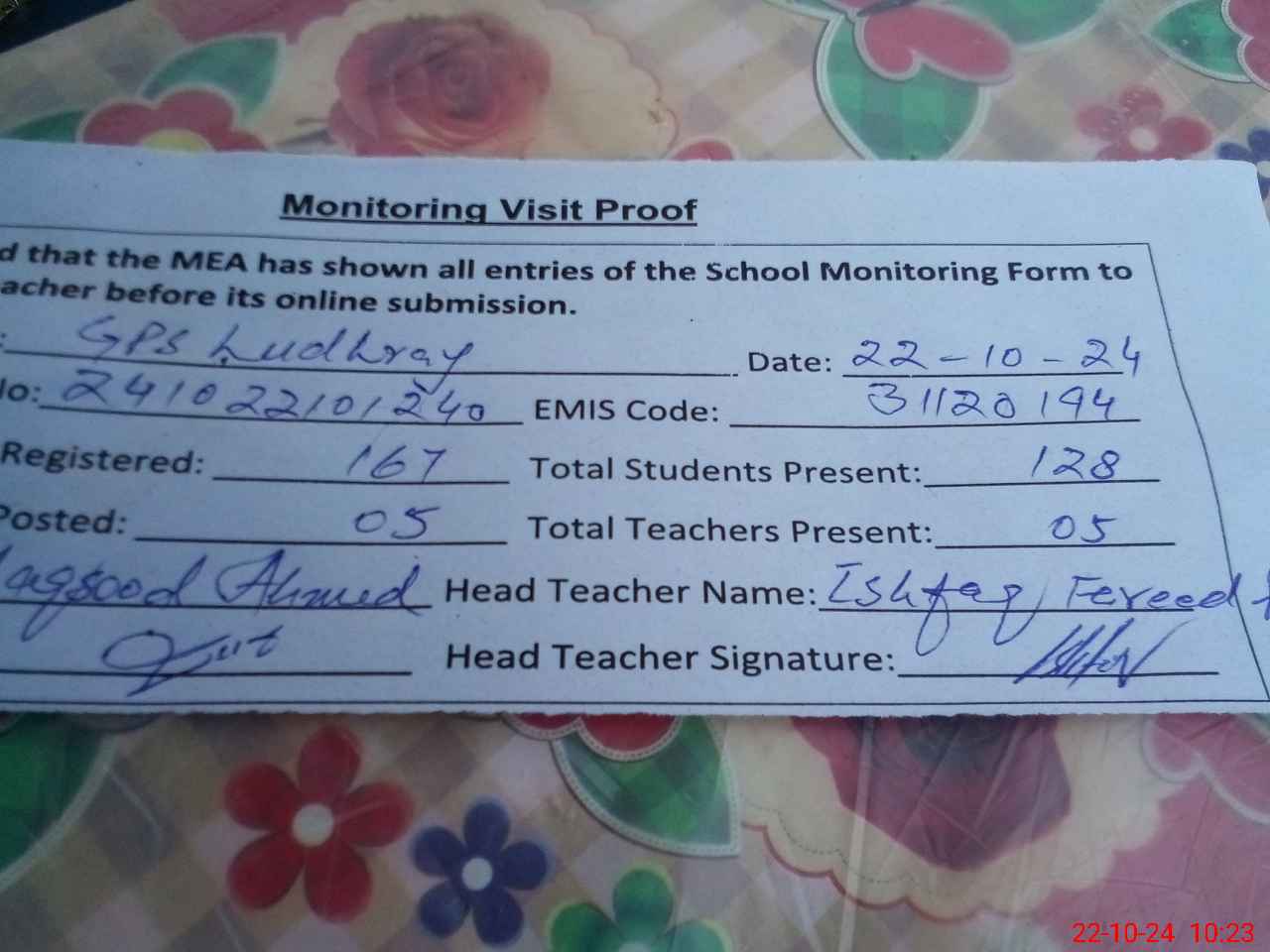 | EMIS Code: 31120194 | Name of School: GPS LUDHRAY | |||