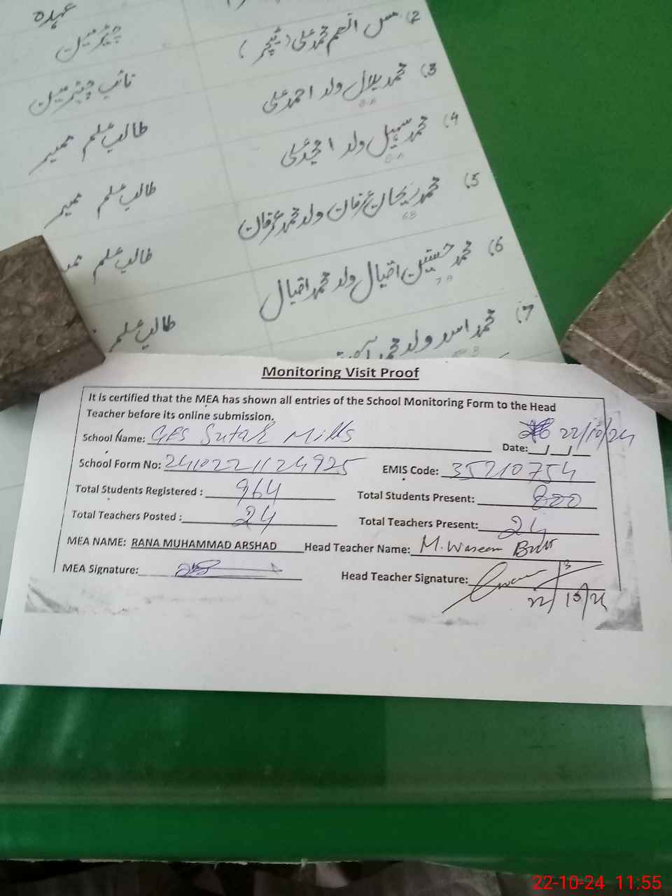 | EMIS Code: 35210754 | Name of School: GHS SUTAR MILLS TEHSIL SHALIMAR (Newly upgraded) | |||