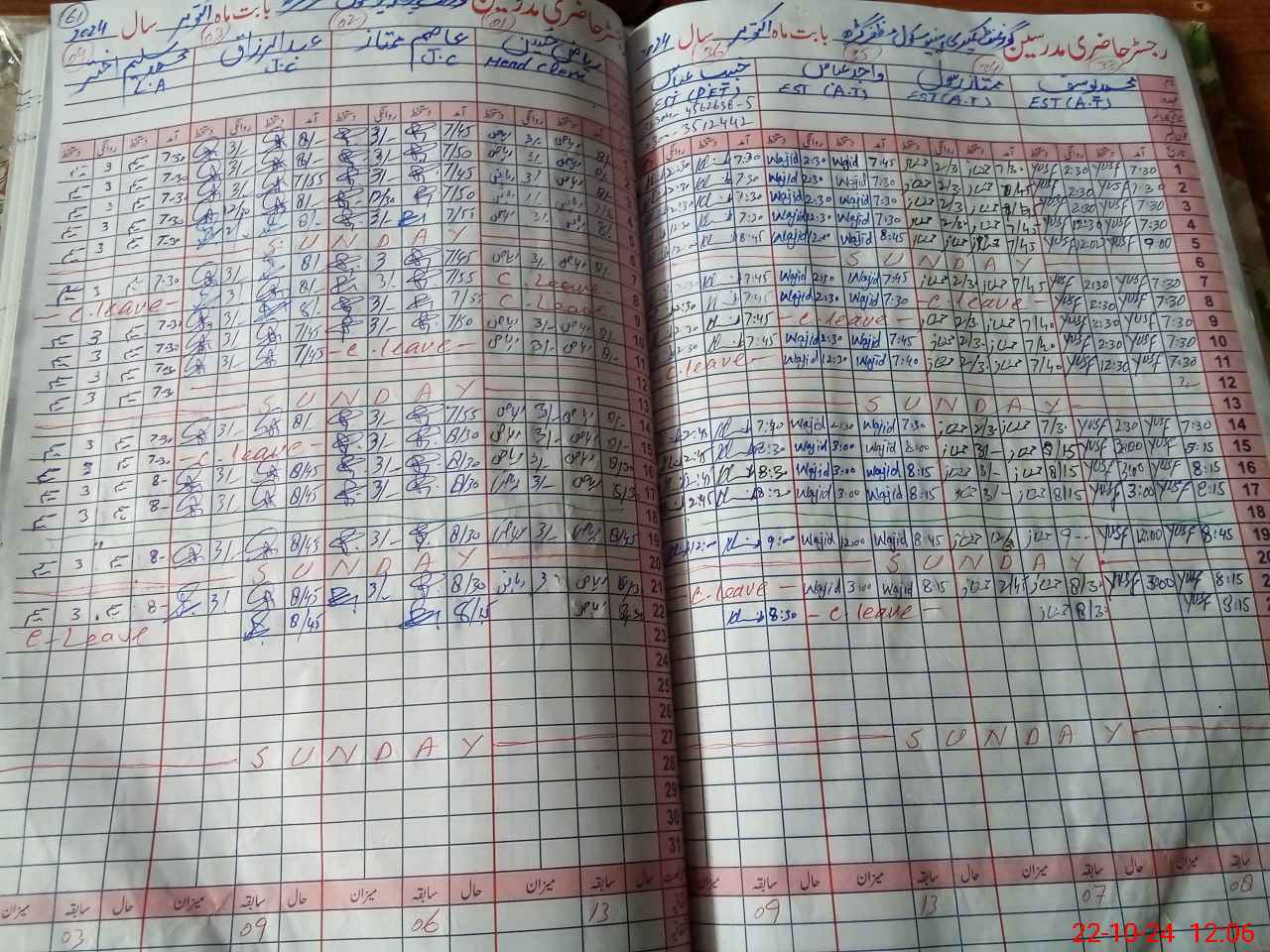 | CNIC | Full Name | Designation | R/C | Absence During Last Calender Month |