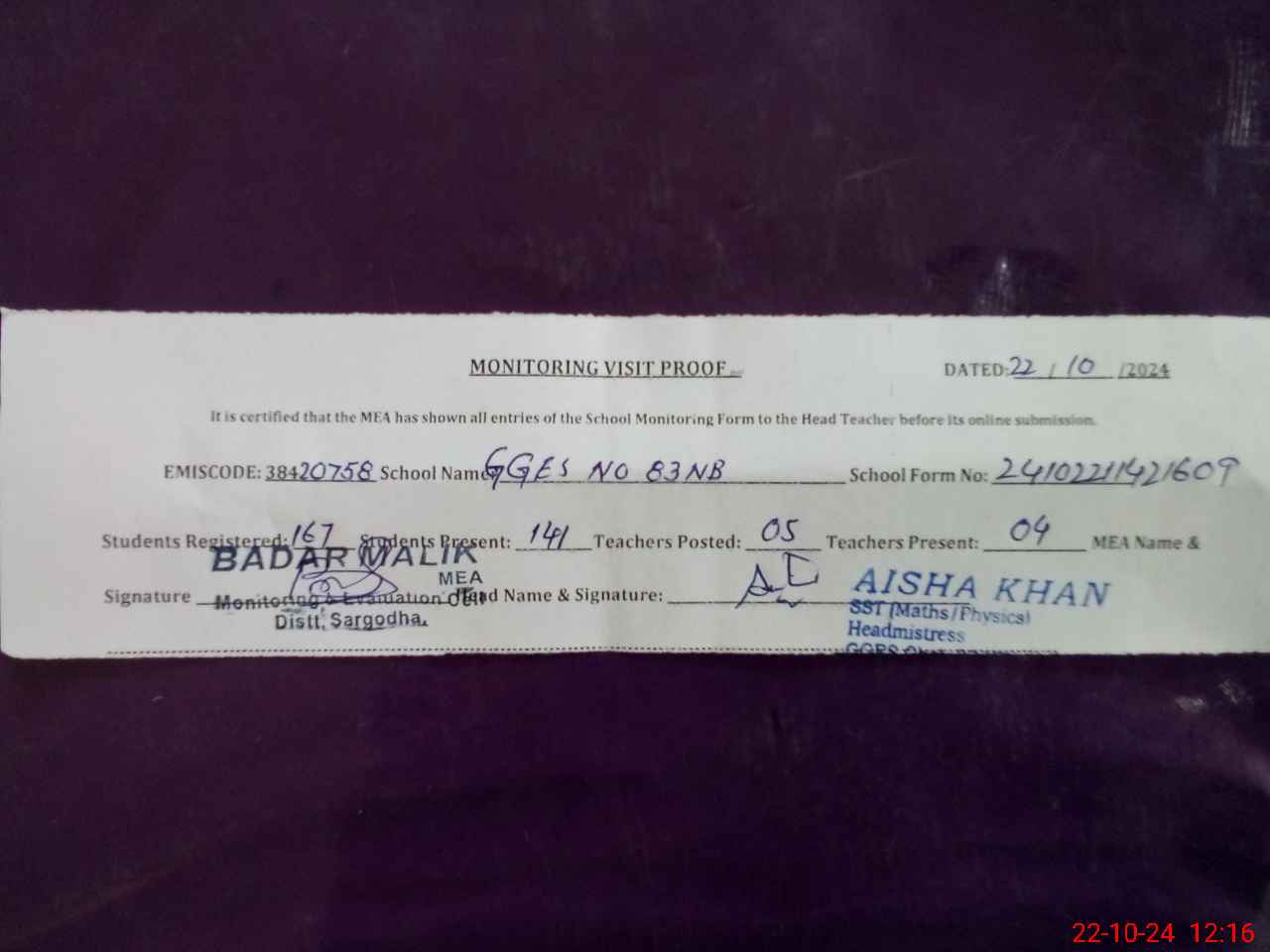 | EMIS Code: 38420758 | Name of School: GGES CHAK NO.83 NB | |||