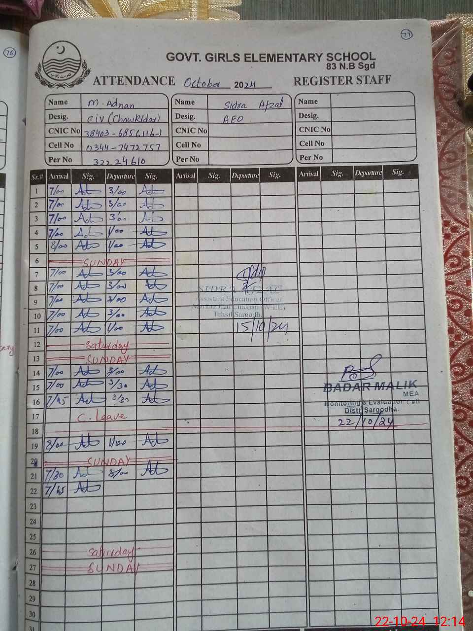 | Name: AI**** KH**** Designation: (School Headmaster's/Headmistress's) SST (PHY-MATH) Phone/Cell Number: 03**** |
