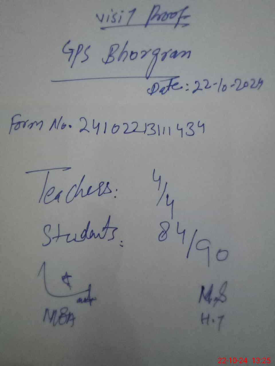 | Attendance Register | Head Teacher | MEA with School | Visit Proof |