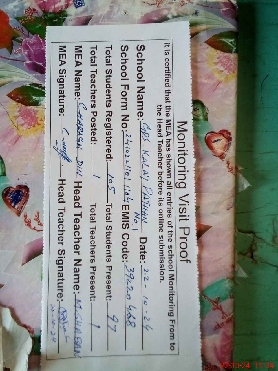 | EMIS Code: 39220468 | Name of School: GPS KALAY PATHAN NO 1 | |||