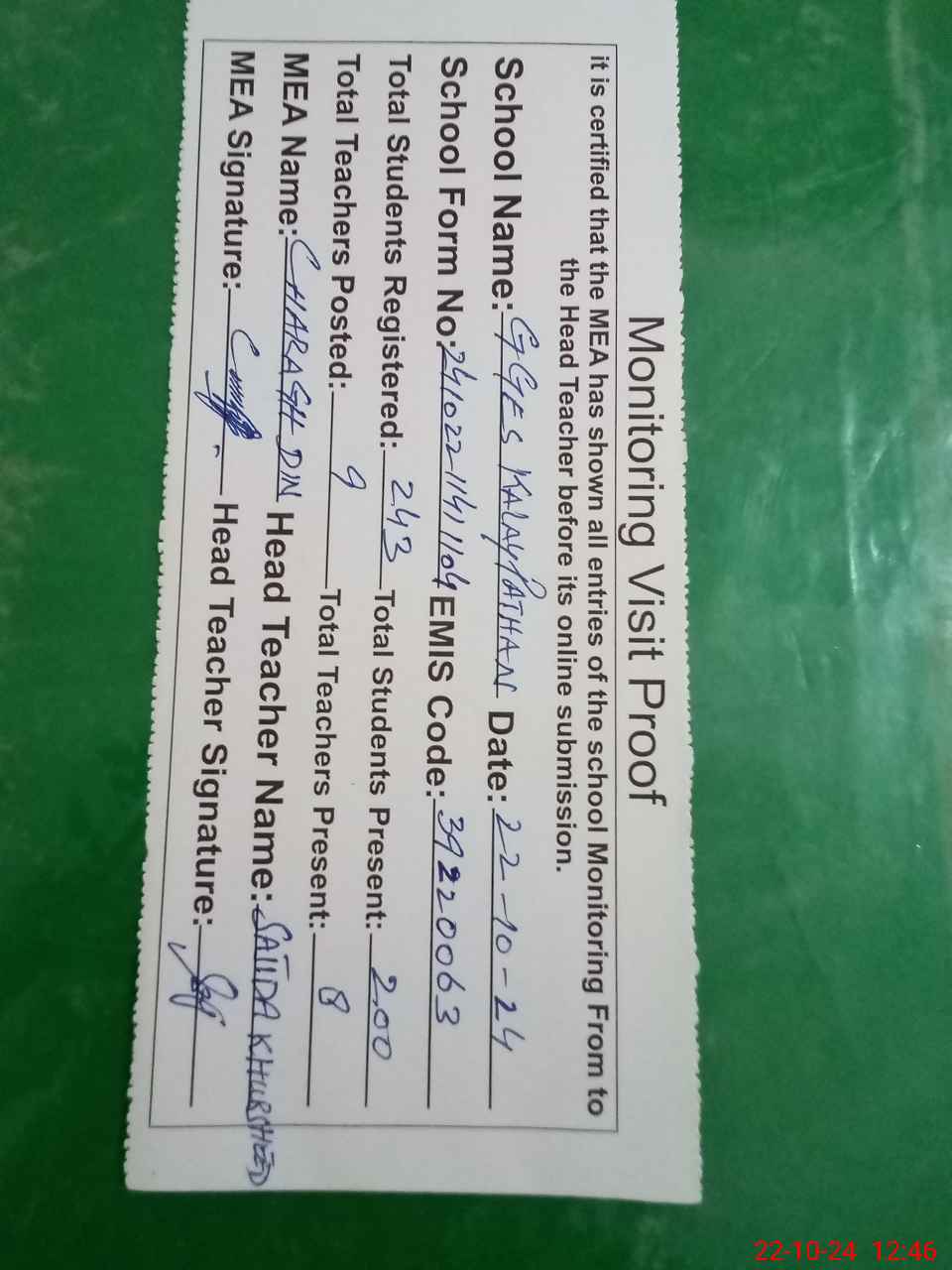 | EMIS Code: 39220063 | Name of School: GGES KALAY PATHAN | |||