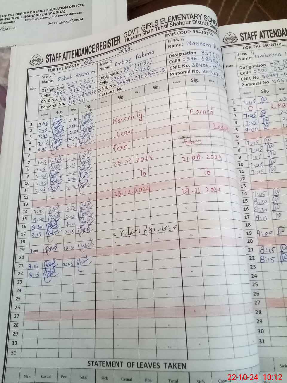 | 38**** | Al**** Sh**** Ba**** | 1 | 30 | 0 | 0 | 30 | 0 | 0 | 0 | 0 | 0 | Maternity | |