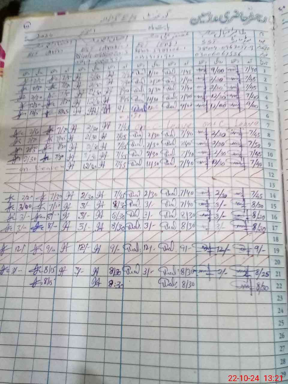 | CNIC | Full Name | Designation | R/C | Absence during last cal. month |