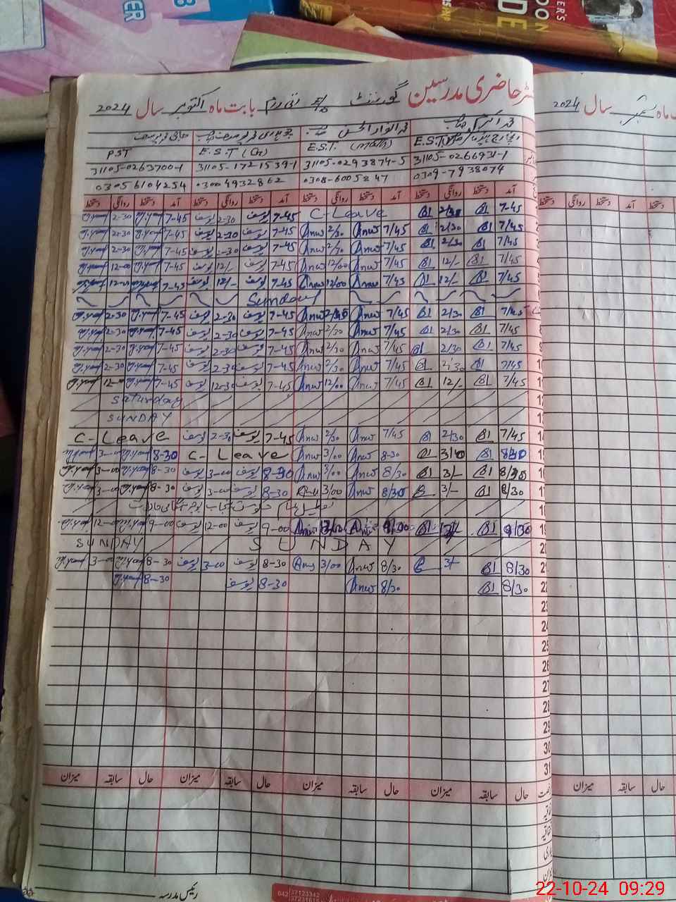 | CNIC | Full Name | Designation | R/C | Absence During Last Calender Month |