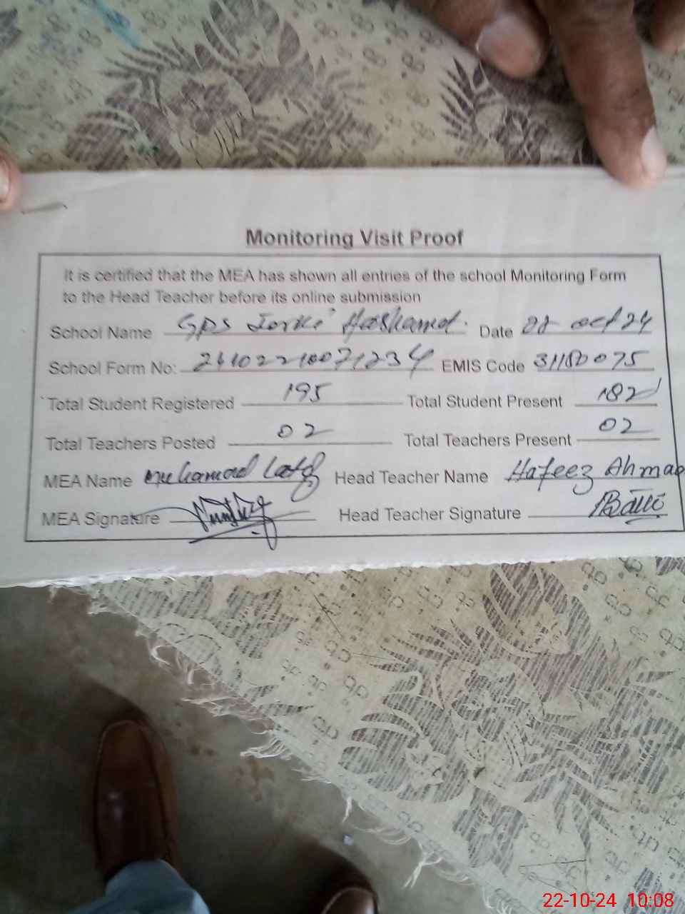 | EMIS Code: 31150075 | Name of School: GPS JORKI HASHMAT | |||
