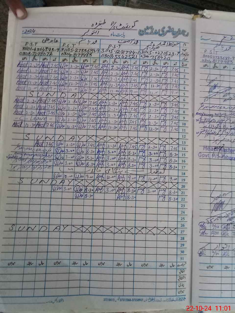 | Name: HA**** AH**** Designation: (School Headmaster's/Headmistress's) PST Phone/Cell Number: 03**** |