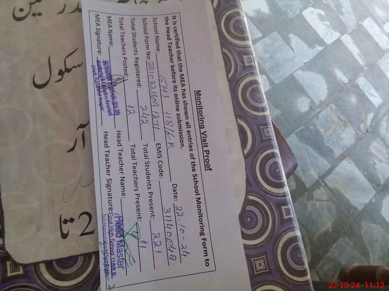 | EMIS Code: 31140048 | Name of School: GHS CHAK NO. 118/6-R | |||