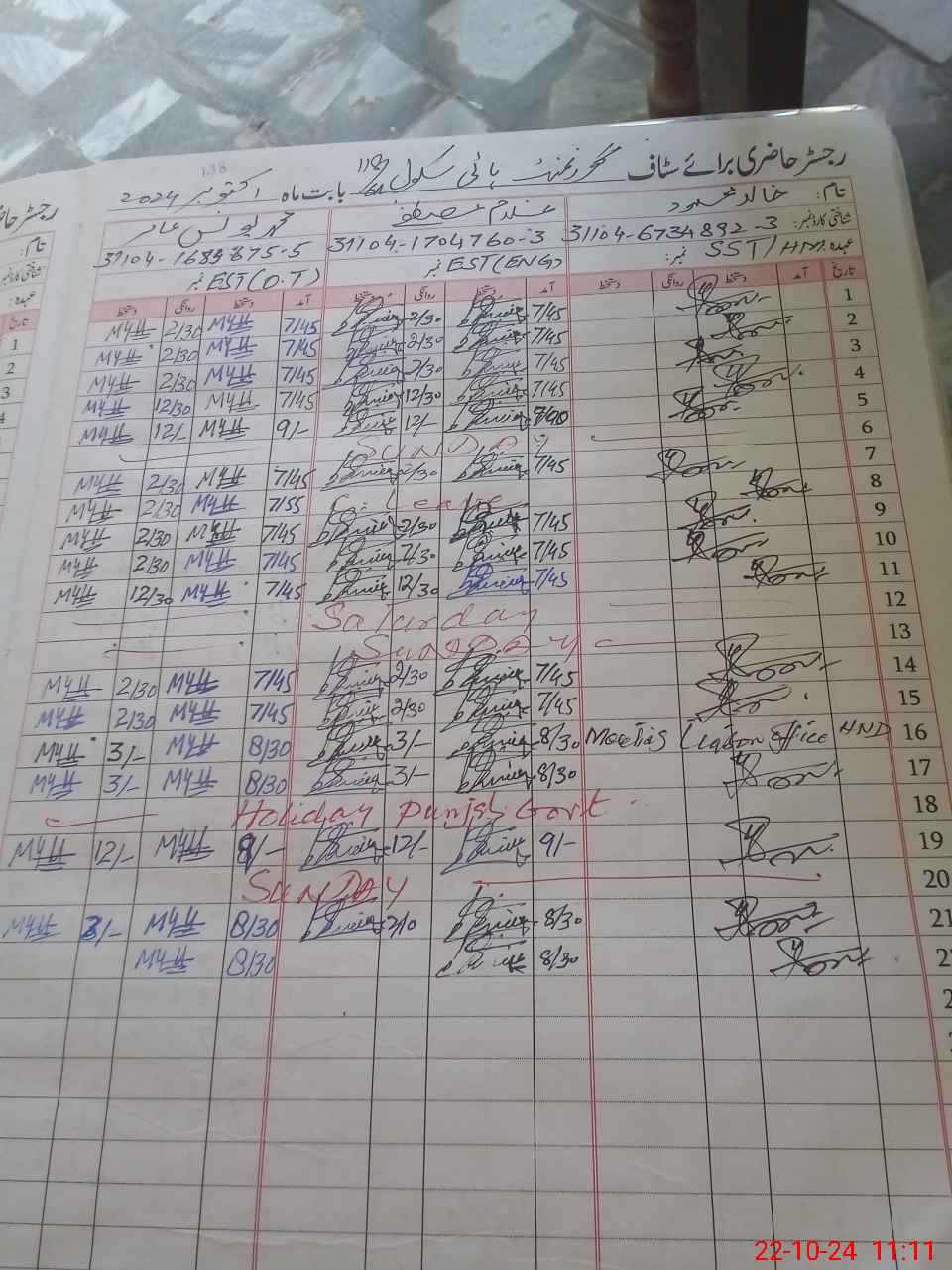 | Name: Kh**** Me**** Designation: (School Headmaster's/Headmistress's) SST Phone/Cell Number: 03**** |