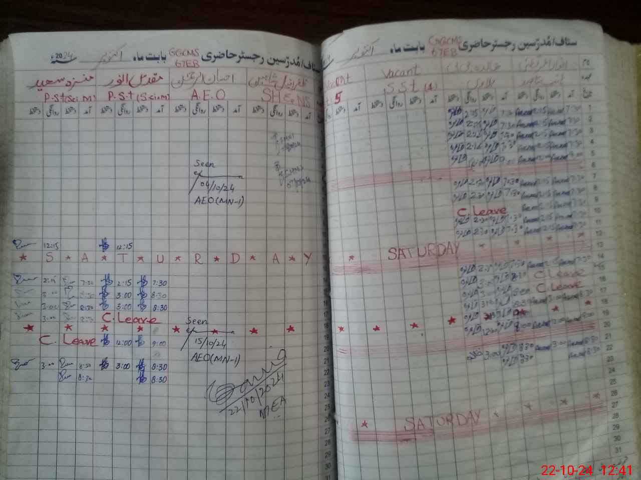 | Leave | Duty | Absent | Maternity | Medical | Ex- Pak |