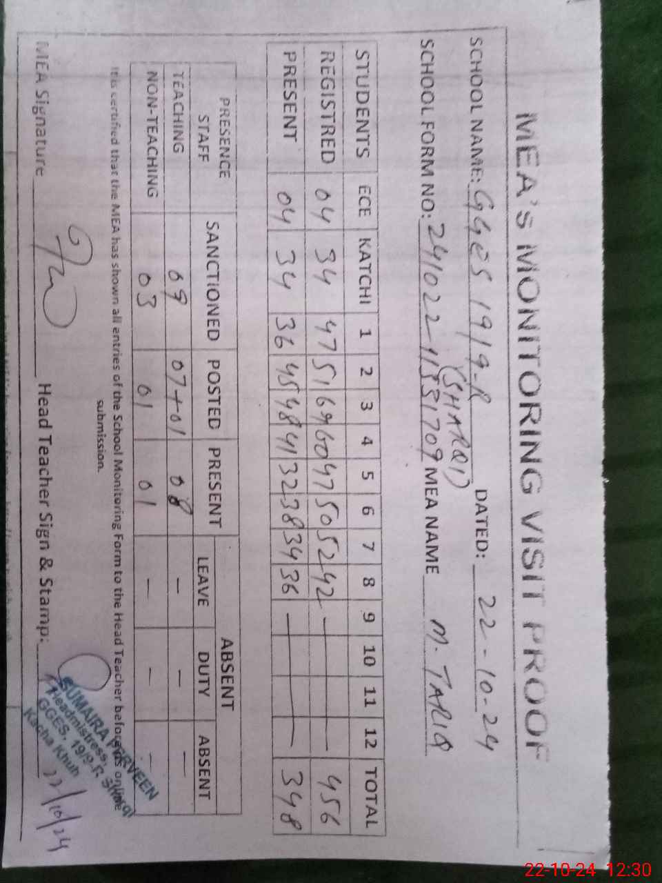 | EMIS Code: 36420471 | Name of School: GGES 19/9-R SHARQI, KACHA KHUH | |||