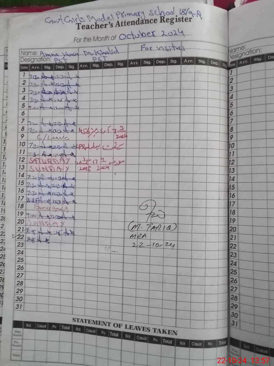 | Name: AM**** YA**** Designation: (School Headmaster's/Headmistress's) PST Phone/Cell Number: 03**** |