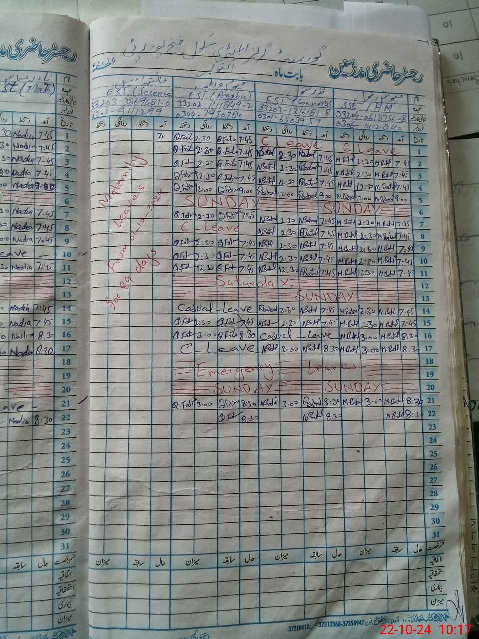 | Leave | Duty | Absent | Maternity | Medical | Ex- Pak |