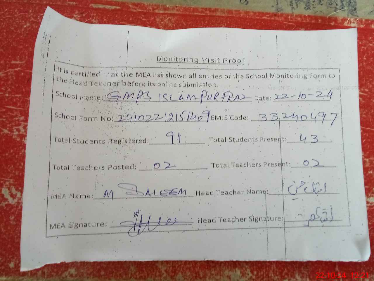 | EMIS Code: 33240497 | Name of School: GMPS ISLAM PUR FARAZ | |||