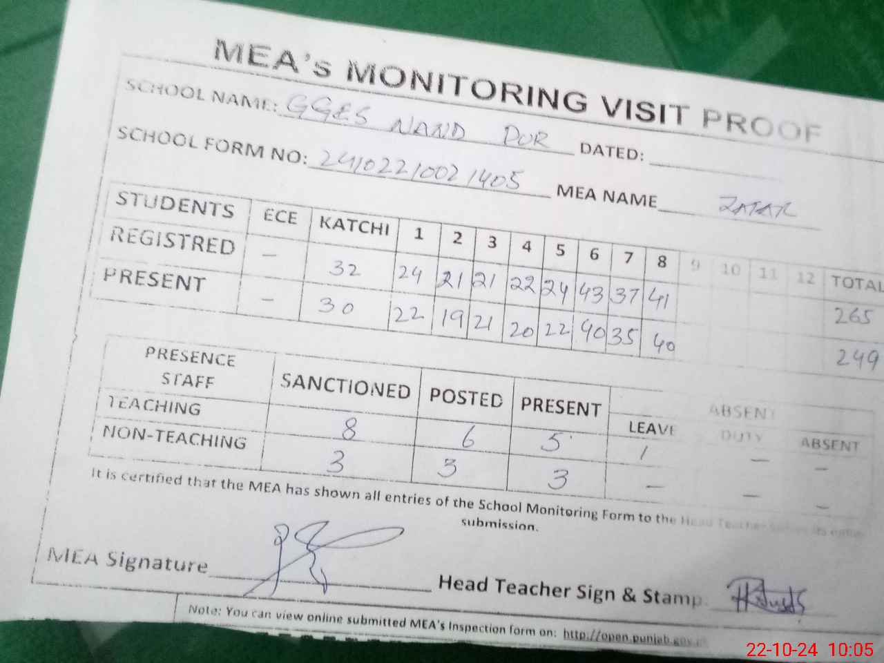 | EMIS Code: 36410113 | Name of School: GGES NAND PUR, SARAI SIDHU | |||