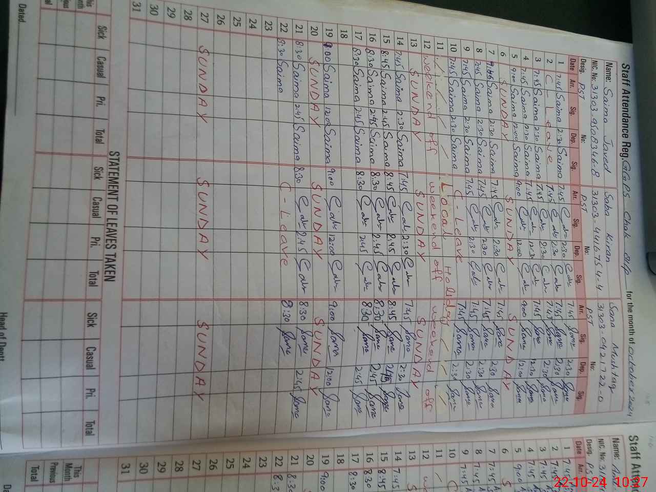 | 31**** | Sa**** Ki**** | PST | Regular | 2 | 0 | 0 | 0 | 0 | 0 | 0 | 0 | 2 | Casual |