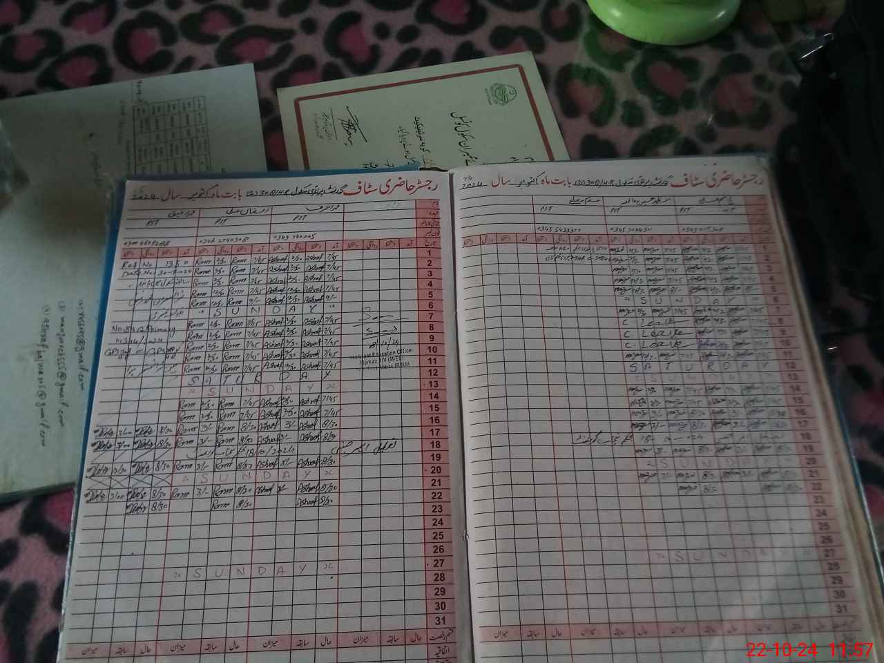 | CNIC | Full Name | Designation | R/C | Absence During Last Calender Month |
