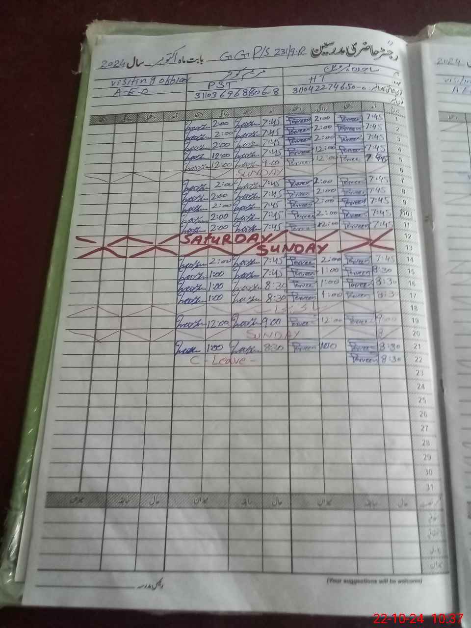 | 31**** | Ma**** Ko**** | PST | Regular | 0 | 0 | 0 | 0 | 0 | 0 | 0 | 0 | 0 | Casual |