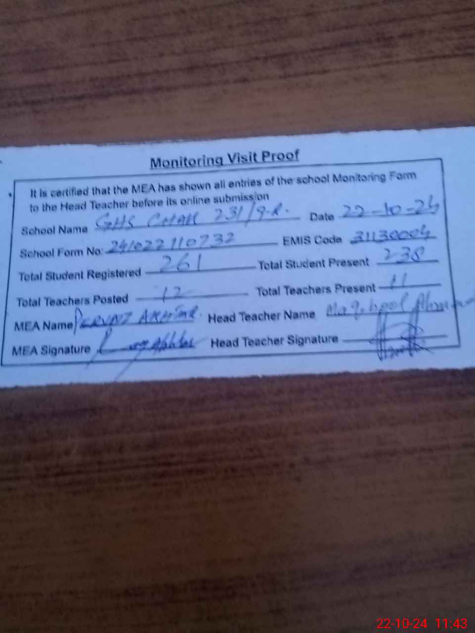 | EMIS Code: 31130004 | Name of School: GHS CHAK 231/9-R | |||