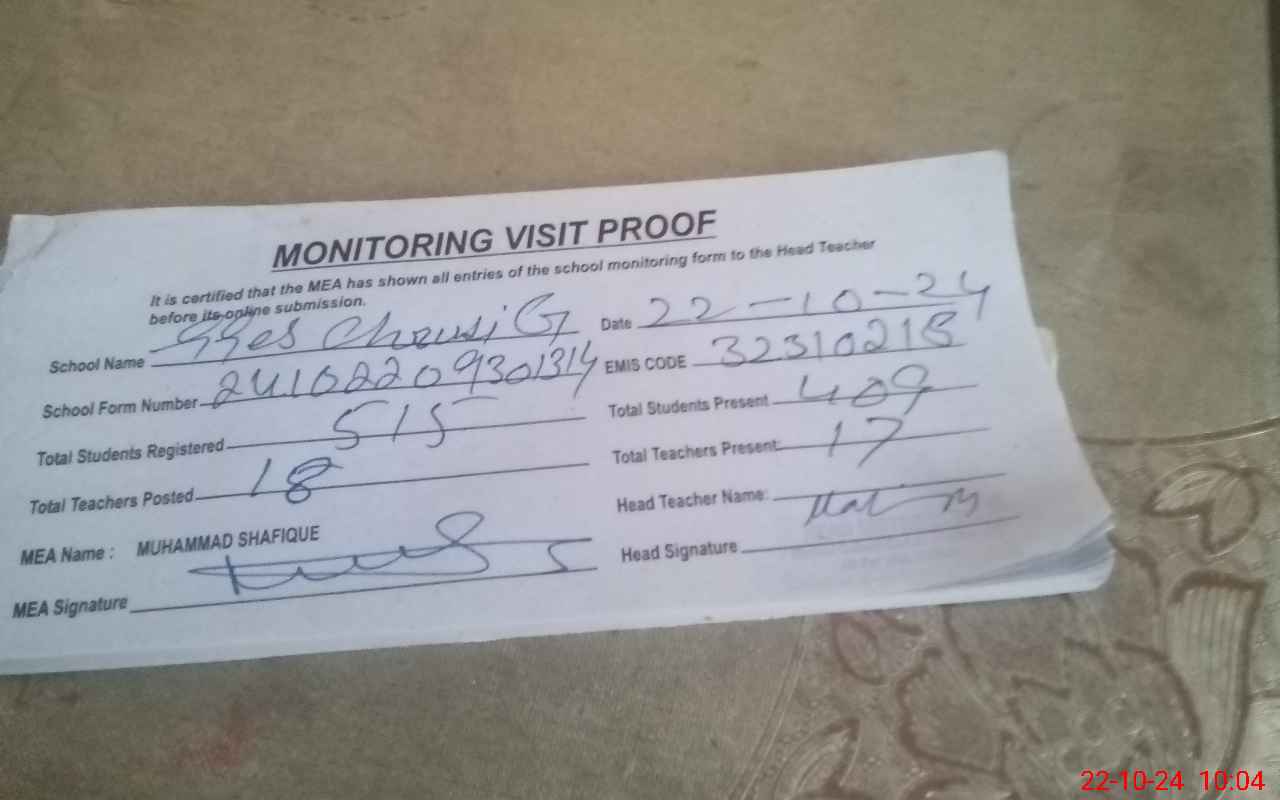 | EMIS Code: 32310218 | Name of School: GGES CHOWKI GABOOL | |||