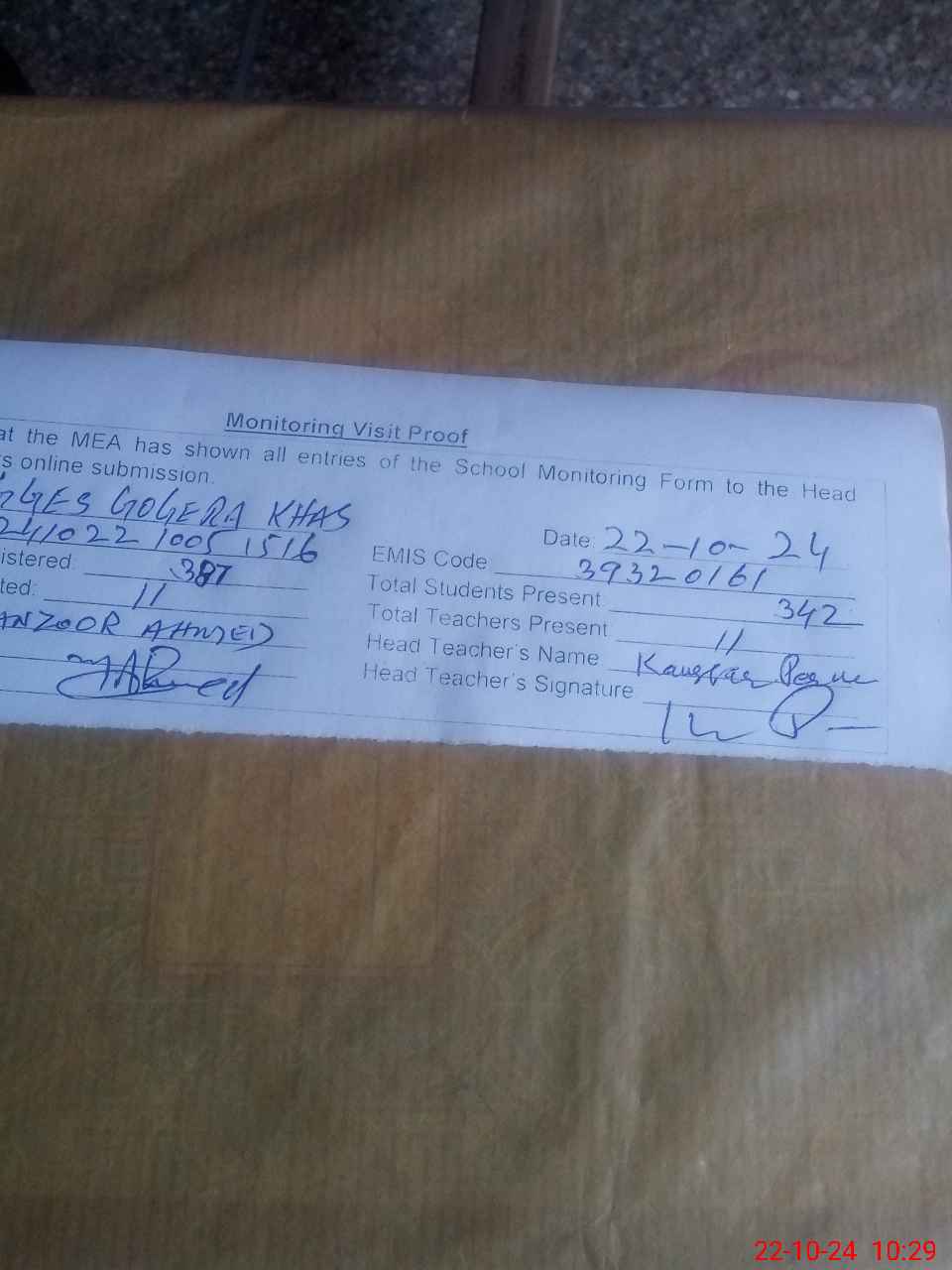 | EMIS Code: 39320161 | Name of School: GGES GOGERA KHAS | |||