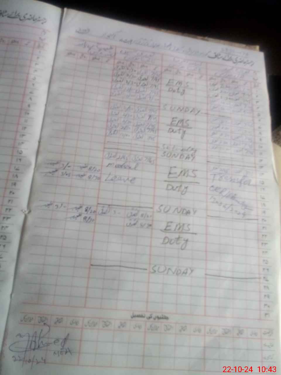 | Leave | Duty | Absent | Maternity | Medical | Ex- Pak |