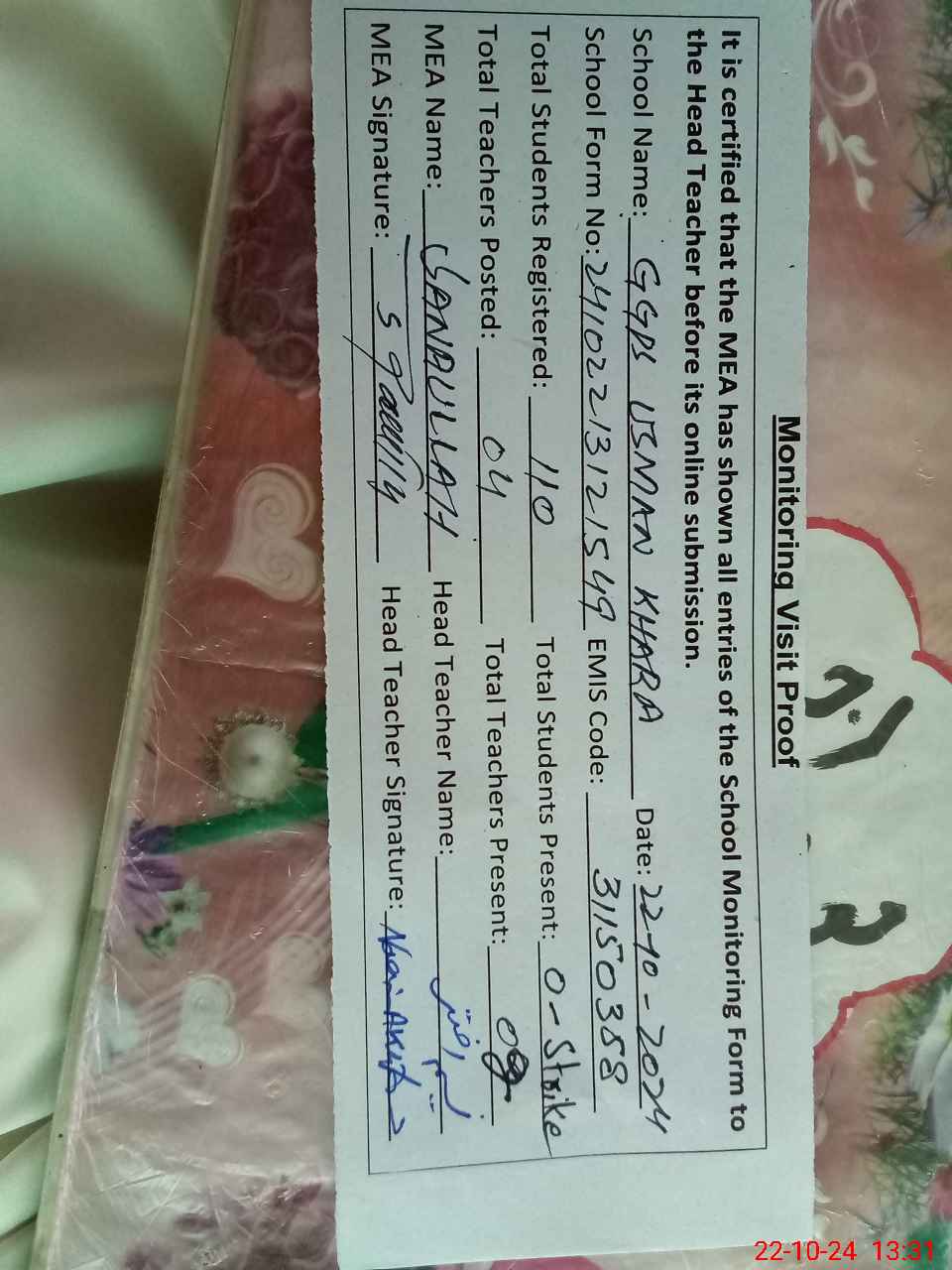 | EMIS Code: 31150358 | Name of School: GGPS USMAN KHARA | |||